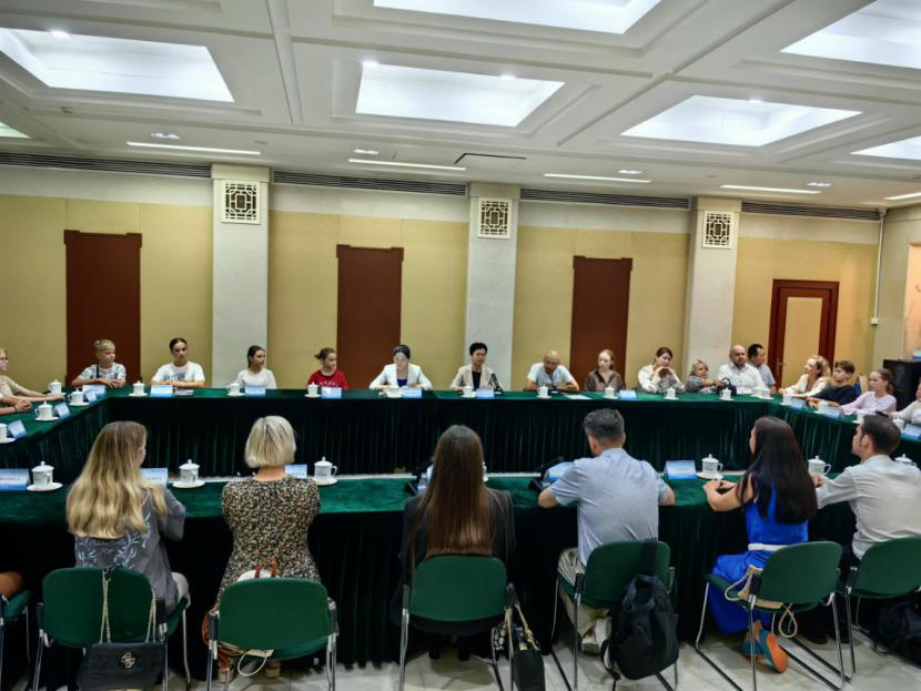 Mrs. Wang Yanxia, Vice President and Senior Councilor of the BPAFFC, met with the delegation on 7th August. She introduced the BPAFFC’s history, basic functions, and exchange programs with Russia. Wang noted that both countries have a long history and a glorious culture, and people-to-people exchanges play an irreplaceable role in enhancing friendship. She said that the BPAFFC is willing to, together with the artists, serve as a bridge connecting the two countries and promote art exchanges and youth exchanges, thus making greater contributions to building the China-Russia comprehensive strategic cooperative partnership and enhancing people-to-people bond.