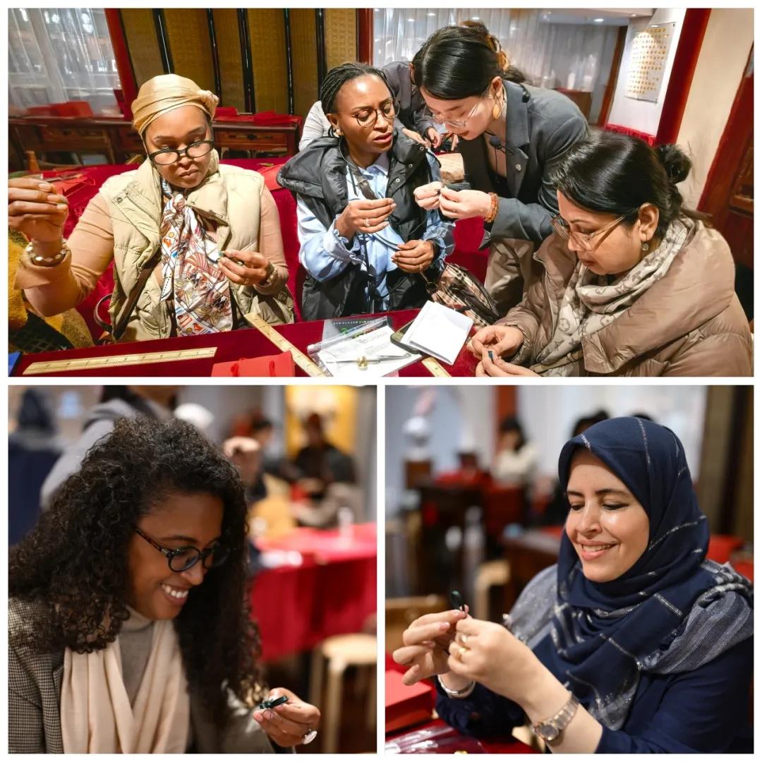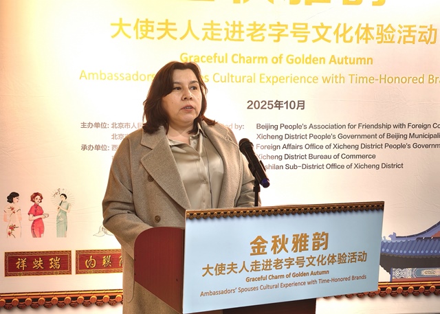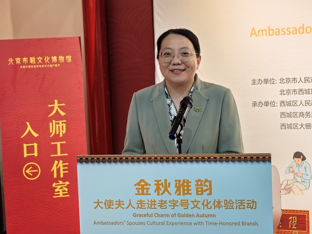 Following the conclusion of the Global Leaders’ Meeting on Women, the Graceful Charm of Golden Autumn – Ambassadors’ Spouses Cultural Experience with Time-Honored Brands was held at Neiliansheng Shoe Shop and REFOSIAN Silk Store, two time-honored brands in Xicheng District of Beijing, on the afternoon of October 16. The event was co-hosted by the BPAFFC and the Xicheng District People’s Government of Beijing Municipality. Ambassadors' spouses from 28 countries across Asia, Africa, Europe, and the Americas gathered at the "China Time-Honored Brands Commercial District" to immerse themselves in Beijing-style culture and experience traditional craftsmanship. The attendees expressed their admiration and enthusiasm for the oriental aesthetics.
