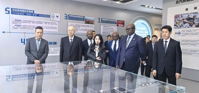A six-member delegation led by Michel Régis Onanga M. Ndiaye, President of the National Assembly of Gabon, visited the Chinese automaker BAIC on March 26, facilitated by the BPAFFC. The delegation experienced firsthand the vitality and dynamism of smart manufacturing in Beijing and engaged in a friendly dialogue on new quality productive forces.