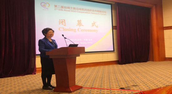 From April 27 to 28, Ms. Zhao Wenzhi, vice president of China NGO Network for International Exchanges (hereinafter referred to as “CNIE”), vice chairperson of the 12th CPPCC in Beijing, and president of Beijing NGO Network for International Exchanges (hereinafter referred to as “Beijing NGO”), attended the 2nd Silk Road NGO Cooperation Network Forum and delivered a concluding speech.